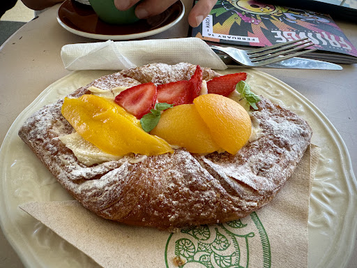 Found this little gem of a place called Nicoletta's just opposite Roxy cinema in Miramar. They are open between 10:30am and 4:30pm from Tuesday to Saturday (Saturday opens earlier at 10) The cabinets to the left were filled with massive slices of pizza, and to the right of the counter were full to the brim of pastries and treats. The quaint blackboard filled with a huge variety of drinks from iced latte to milkshake. The mermaid latte and charcoal latte caught our eyes, as well as the iced strawberry matcha, I was drawn to the iced bounty, which is coconut and chocolate, and we tried a good variety of their cabinet offerings. We got the most popular flavours of pizza, which were the pepperoni and smoked mushroom, the slices were massive and we loved the flavours, lots of cheese on the smoked mushroom and the mild smokiness was a big hit. Their cinnamon roll was a buttery brioche like bun with super fragrant cinnamon rolled in, the sweetness was perfect and was not sickly, which I am always afraid of when eating sweet things. The almond Danish was a delight, I managed to get a nice photo of all the layers of the pastry, this one I was very taken with! I am usually not a big fan of biscotti but it came highly recommended so we decided to try out, and I could see why, the short pastry shell was perfectly crumbly and just the right thickness with a gooey centre, and the meringue on top completed this beautiful tart! We also tried the tiramisu donut which was very creamy on the inside and had a nice tiramisu flavour to it. For drinks I really loved my iced bounty, which was the perfect amount of coconut flavour, the mermaid latte was very much like a chai latte with all the beautiful spices infused, the charcoal latte was very mild but charcoal apparently is healthy, right? 😄 My friend really enjoyed her strawberry matcha and said the matcha flavour was really nice, the service was friendly but not intrusive, and the environment was cute and well lit, apparently their milkshakes are very popular too, and we also had our eyes on the calzone cos they were so big! Maybe next time! Seems like a great place for an afternoon tea, and with the variety you can easily try different things every time you go! Pleasantly surprised...