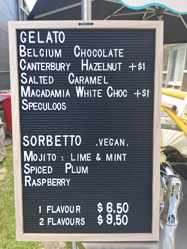 Read moreIt’s hard to compare this incredible artisan homemade gelato to any other. Its made fresh here in Raglan from New Zealand sourced goods and seasonal flavors. The cart is special made all the way from Italy and absolutely gorgeous. The humans scooping it are just as fantastic- the incredible duo - Lars and Hanna! They are exactly who I’d want my gelato served by. That’s not even mentioning the handsome little Adam who is around for the cute baby affect. The few extra bucks for a scoop are worth it a hundred times over. You’ll not want ice cream or any other gelato...