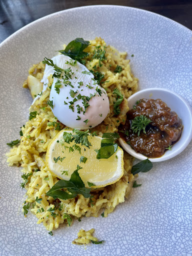 The worst cafe meal in quite some time. Two things off the menu I tried to order they didn't have. Finally ordered Kedjiree. Big mistake. it was boiled rice and onion swimming in a curry powder sauce. I struggled to find much fish And the poached egg on top was cold and undercooked. My husband ordered scrambled eggs and bacon on sourdough. The bacon was only slightly cooked. No brown on it at all. The bread was brown toast. Not sourdough. He ate his. I left most of mine. When the wait person asked if she could take my plate I explained that I wasn't happy with my meal and found it inedible. She shrugged her shoulders, took my plate and walked off. It was disappointing that no one one followed up on why a full hardly touched plate was returned. Hense this public review. Obviously minimum staff training. ...