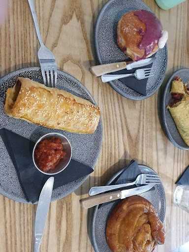 Pros: The blueberry custard doughnut and the banana caramel brioche were banging. Rich, flavourful, perfectly baked, and downright delicious. I'm salivating just thinking about it ! Service was very good too. Friendly, nice staff. We came at 10am on a weekday and the cabinet was so full of many options, the display was beautifully done. Lots of vegetarian and vegan options. Salads for gluten free folk too. The tomato chutney was good.