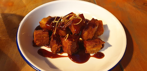 Food was good and it came out quite quickly. Favorite was the Pork bites. They were so crispy and light. Wasn't soaking in oil at all! It was great! Cauliflower bites were crispy but wasn't our favorite from the lot we ordered. Tacos was delicious but was a bit dry. Everything else was good. Just glad that the fried things we ordered were very light and weren't greasy at all. Service was average.