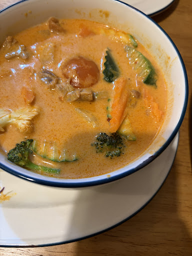 The Penang curry (chicken with extra veg) was terrible. There was no range of flavors, it tasted like coconut milk and curry powder. The chicken was jelly-like, and had no texture⦠I believe it was fully cooked, but not 100% sure on that⦠I ordered it Medium heat, yet there was not even a hint of spice. The rice was definitely the best partā¦