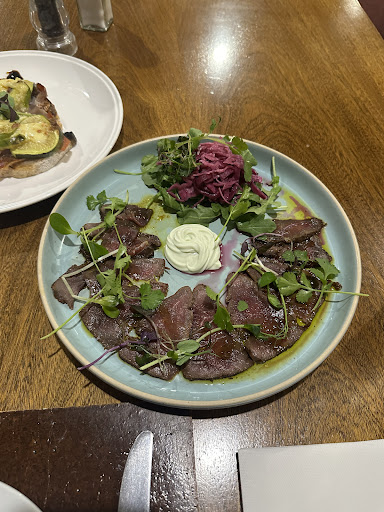 What a gem this restaurant is. I had heard via a friend that it was good so thought we'd check it out. No fighting for parking. Peaceful location. Our maitre d' was fabulous. Explained the specials and the menu. He was very attentive and managed to see to everyone in the restaurant seamlessly. We shared the cured tuna dish to start which was absolutely beautiful. Magnificent flavours. Next salmon for me and sirloin steak for my son. Nice big portions, cooked well. The desserts looked amazing. Son opted for the frozen halva meringue with pomegranate and baklava. Afterwards we went for an explore of the stream and the games area. Definitely recommend this restaurant with great friendly staff and excellent food. We will be back to sample more delights and probably from the...
