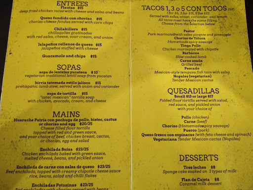 We stopped here for lunch on ANZAC day and boy what a great place we ended up picking. I had the Quesadillas suizas (chicken in a wrap with cheese, green salsa and black beans) and it was exquisite! I couldn't believe how good the flavour profile was. The chicken was soft but not mushy, and delicately flavoured. The wrap was soft and chewy, but not tough. You could cut it with your fork. The green salsa had a great sourness to it which cuts through the creaminess of the chicken and the fatiness of the cheese. There's a slight spiciness in the salsa which was well rounded and delicious. The black beans were flavoured just enough to be not bland on its own, cooked to be soft but still retained enough firmness which gave good texture. Together paired with the quesadilla it gave the right balance in flavour richness, and evened out the spicy in the salsa. I loved it. The pickles onions were a welcome palate cleanser for everything else on the plate (and didn't have the overpowering flavour raw onion has and that, I hate! Bonus points for me) and the astringency of it added a great depth of flavour. My friends had Tamales de rajas and Pescado a la veracruzana which were also amazing. The tamales ended up being the spiciest out of the 3 dishes we had and the corn dough was very filling. The fish and sauce/condiment paired well with the chilli rice. In my opinon all 3 dishes had a wonderful flavour profile and I will definitely come back again next time I'm visiting Wellington. The service was good, the staff was attentive although it did take about 30 mins for food to be served after ordering - unsure if it was because there was less staff rostered for a public holiday; since the restaurant wasn't very busy when we were there. They also have a great music playlist. tl;dr - best Mexican food I've had to date, extra yummy, would...