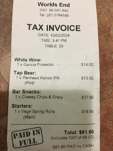 Read moreI have found a particular member of this staff to be unfriendly. She never has greeted me when I've been there. I think she is a senior staff member also. When I asked her if I was allowed children to eat with me at the table she asked me if they were my own children. That question was not a ridiculous one but it was the way she asked the question that felt wrong. It was as though she was talking to me like in an acusational and disrespectful or insensitive way of speaking. I have felt this from this member of staff now and again about 3 times. She's cold and extremely unwelcoming. I like to attend this bar because it's close to where I live and it has my favorite beer on tap. Not many bars have the 🍻 beer I like on tap but World's End Fraser cove does. I just wish the bar attendent I'm speaking of here wasn't on staff there because I'm put off going there because of how I've felt she's treated me when I...