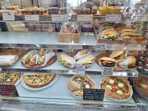 Read moreLovely Food both savoury and sweet. Both Vegetarian and Vegan options in the form of toasties and sandwiches or pizzas. Baked (which sell well as per photo) as well as Raw cakes too as well as some local products for sale around the cafe. Pizzas are surprisingly good given that they are not what you may expect and they have a generous topping. The hot drinks - oat flat white is very good and you can get 50c off with your own cup. Staff are lovely and nice range of seating - booths and small tables inside, picnic...