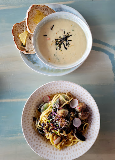 From the initial telephone call to reserve a table for two, to the greeting, the service, the food, wine selection, ambience, cleanliness the entire experience we found to be second to none, ever, and we have dined out around the World. As retired hoteliers with moderately high expectations, believing that the service industry has a responsibility to serve well, I/we my wife and I could not fault this establishment. The young lady who took our telephone reservation set the tone, efficient, friendly, welcoming and professional. The same young lady greeted our arrival just as warm and welcoming, effortlessly guiding us to our beautifully positioned window table. The menus and wine/drinks list presented timelessly, clean and easy to read. A moderate selection by no means over faced but covering land and sea. To start, we felt like seafood with accompanying delicious bread and dips, the waiter suggested reigning back the quantity when I suggested two of the lemon pepper squid and two bread and dips. Appreciating his wisdom, he knew the portions. We shared the squid, gently, tenderly cooked and the warmed bread selection with dips, superb. To follow we both decided, seaside, fresh Stewart Island Blue Cod. Amazingly fresh beautifully cooked, thin crisp batter, the freshest of Blue Cod fillet and crisp dry, pale golden chips obviously from the freshest of oil vats, could not have been bettered. Not forgetting the fresh battered Bluff Oysters I had added, after hearing other tables ordering them. Had been craving them for weeks and wham, here they were in Riverton on the very bottom sea swept face of the South Island. The accompanying fresh Iceburg and tomato salad, crisp, sharp complimented the fish superbly. Simple, fresh, honest food. The Afrigato with Kapiti Vanilla Icecream, espresso and Frangelico a great finisher for me, as was the Eton Mess Sheila had, all washed down with a bottle of beautiful Hawkes Bay Pinot Gris. I can honestly say, we love dining out, love our food and this was simply the Best, Food, Service and full package. To crown it off, the Chef/Owner personally appeared at our table to present us with a complimentary Food Voucher to use on our next visit. Reason being, our reservation, three course sit and enjoy food outing washed down with a bottle of Vino. Never have we recieved such delightful appreciation of our custom.👏🙌🫶👍🏼🥂 We will be back for the Food, Welcome and full experience. Dunedins only 3 hours away and we need to take the Grandkids to...