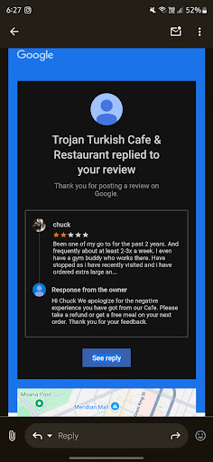 Read moreBeen one of my go to for the past 2 years. And frequently about at least 2-3x a week. I even have a gym buddy who works there. Have stopped as i have recently visited and i have ordered extra large and large for my brother and when we got home the large was the same size as the xtra large. I would probably be better off getting large size. Very unpredictable as it happened twice. I normally order large and wanted to get xl as i was hungry and paid for the big jump of price but was left disappointed.