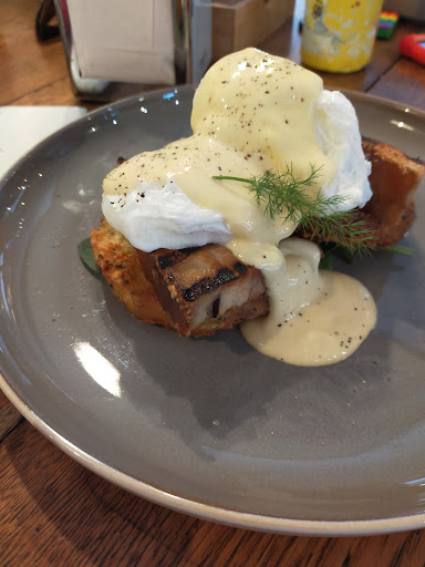 I had a flat white and the eggs bene with pork belly and it's absolutely ruined me for bene any other way. My husband had a vege grill and enjoyed it thoroughly, and our 4yo had the banana, bliss ball, yoghurt, juice kids brekkie and loved it! The food and coffee came out quickly.