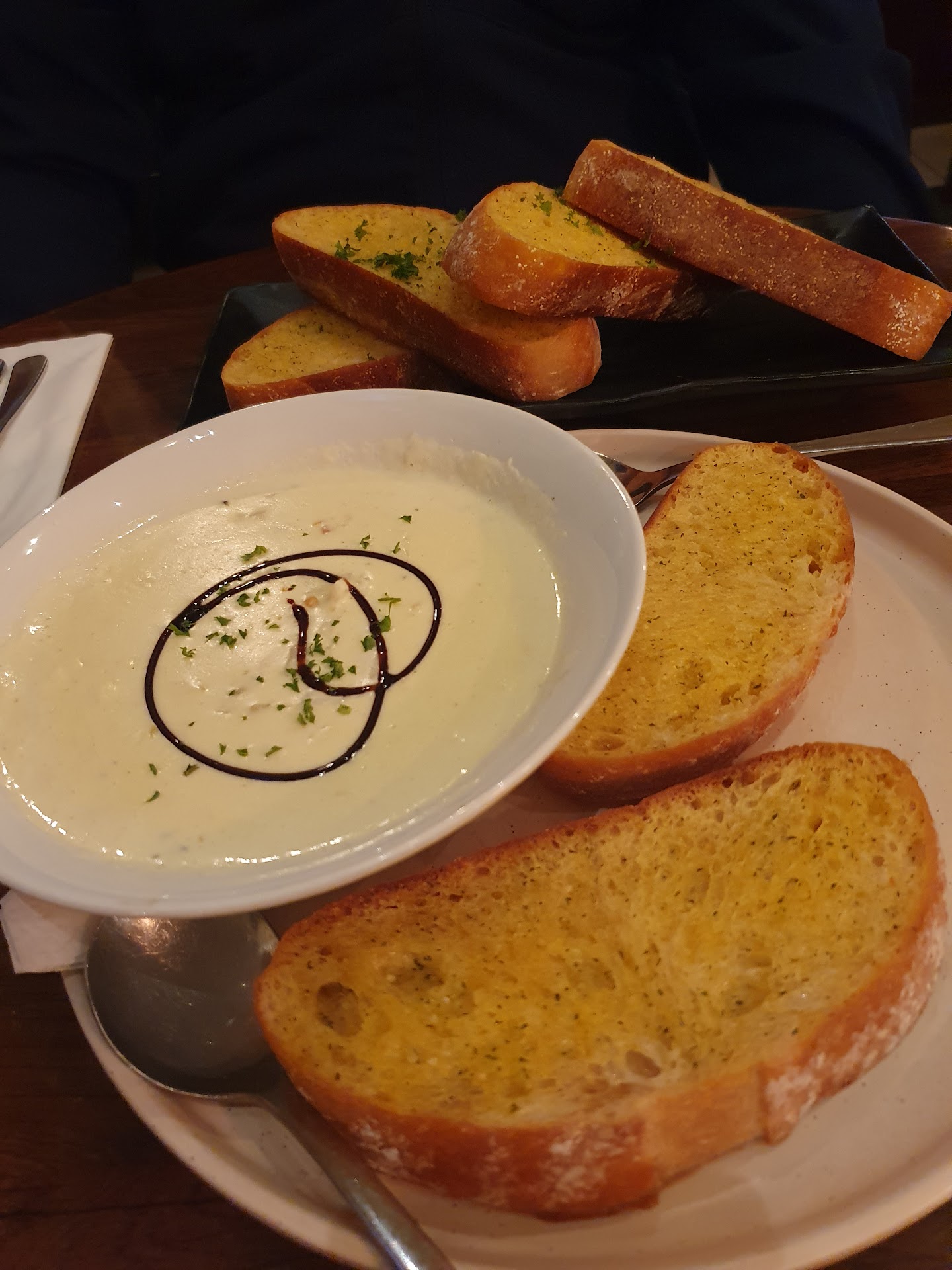 Coming to the food - real decent steak - we had ordered the Rib eye combo - great portion - we divided between us; Chicken wings were also delicious except for the portion- i felt that could have been better ($15 for 6 pieces felt a tad over priced) - the blue cheese dip with the wings was yum. Plus I must mention that the lady who was with our table was real sweet and she bought extra garlic butter for the steak as requested...
