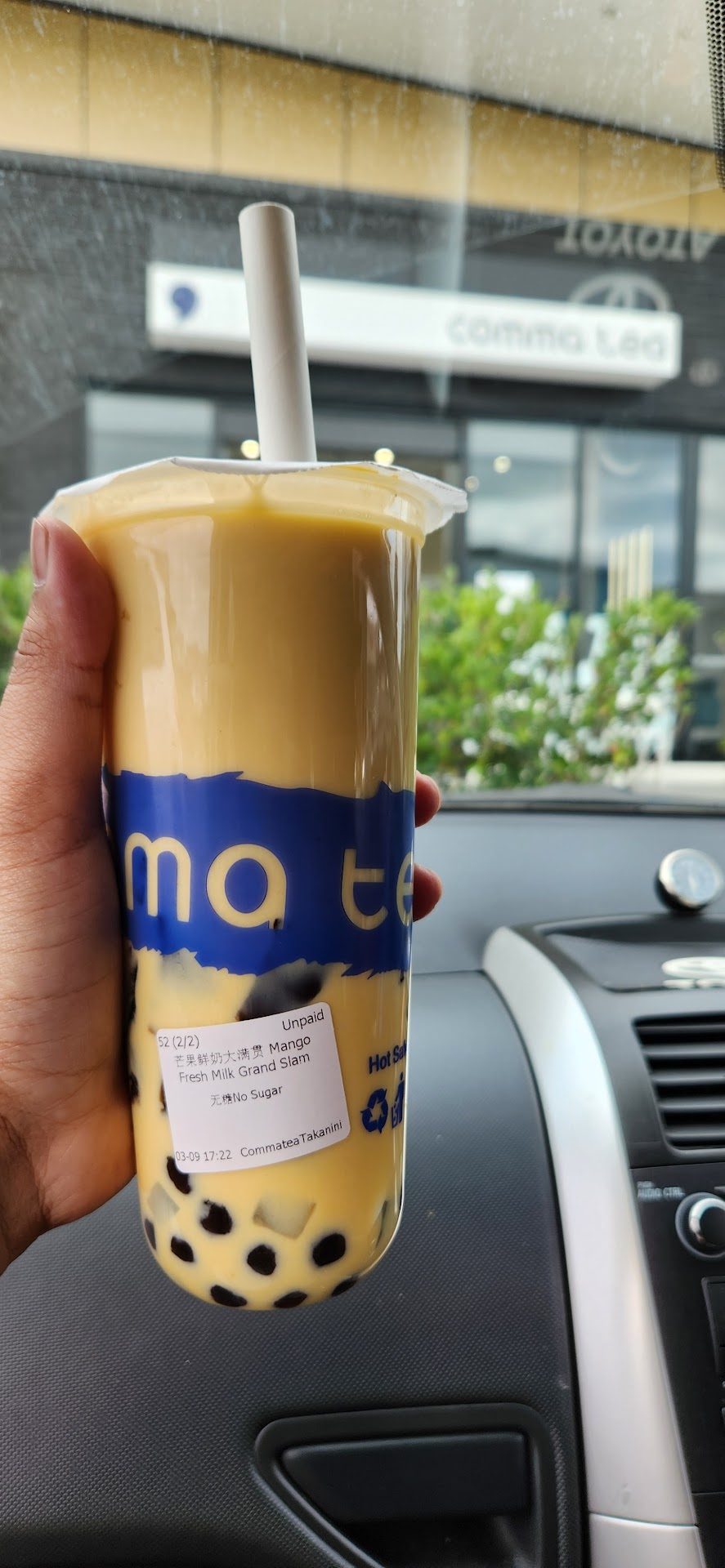 Read moreWas craving bubble tea and so thankful to find Comma Tea nearby and that it closes at 9pm daily! I love taro bubble tea so I ordered the Taro grand slam with 100% sweetness which was just under $10. It was great - loved it! Overall, I love the customer service, its located in a modern shopping complex with plenty of parking too. They offer a lot of options for about $10 pp, so you're bound to find something you like. Recommended to all and don't forget to ask for your...