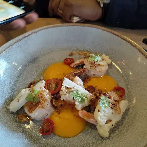 Read moreIt was by luck we ended up here. The place we originally wanted to try said they didnt have any available tables. So we searched up restaurants nearby and this one caught our eye the most esp with the yummy menu. We parked up and from outside it looks very quiet and empty. We opened the door and the atmosphere was awesome it was actually pretty full and the waiter was awesome and allowed us to sit at a table even though we had no booking. First glimpse of the place, very warm and the ambience is lovely. We ordered the tasting platter as we wanted to try a bit of everything and my gosh was that one great platter. Everything cooked perfectly. Even the raw items were top notch. My partner went on to order the wagyu and one of the seafood dishes and he absolutely loved it. We also tried the cheesecake and that was very yum too. Money well spent. Great food and even better service! We will definitely be back. I would probably recommend to go without the...