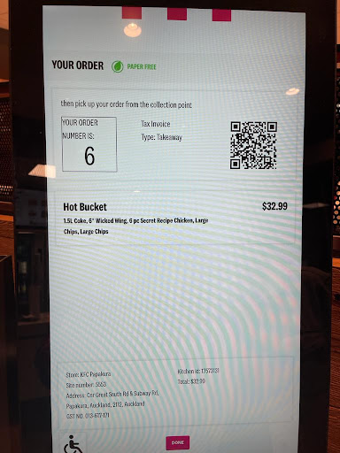 Read moreJust a few mins ago i came back home from the Papakura KFC empty handed. I went to KFC stood in line waiting for my turn and after literal 5 mins when my turn came i was told that i cant order here with eftpos so i was told to order from the kiosk after i ordered my Hot and Spicy bucket i stayed waiting patiently for my order. People that arrived after me were getting there orders made and leaving while i stood there. 15 mins later one of the workers told us that we have to wait 15 more minutes as its a bit busy. So we remain waiting patiently. 20 minutes later of waiting another worker says our order will be ready in 15 mins so we wait and then another workers asks our order and tells us to wait 10 more mins as the spicy chicken is taking time to get made. After an hour of wait we ask them if the order is ready, and they say they need 6 more minutes to make the spicy chicken, when they literally gave spicy wings to someone who had arrived after us. So we decided to get our money back and leave. We got our refund in cash but the...