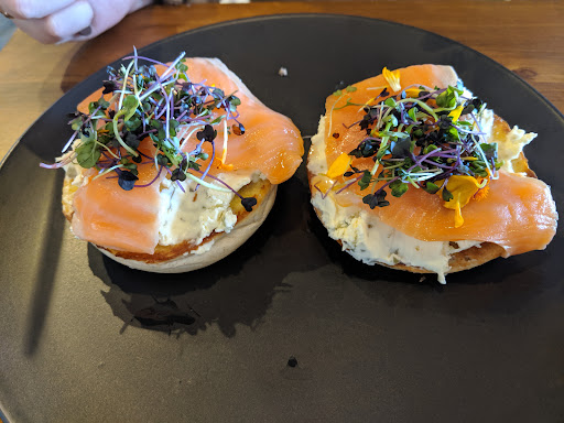 Read moreFirst & last time coming here unfortunately, no problem with customer service however the food was very basic and disappointing, I ordered a cream cheese bagel with tomato (they ran out of avocados) I kid you not there was hardly any cream cheese on my bagel 😳 it was so basic that you could easily make a better bagel from home. The chicken burger pretty plain as well. Didn’t get our moneys worth. Cafe was dim & cold. Just needs abit of pick me up in there and probably an upgrade...