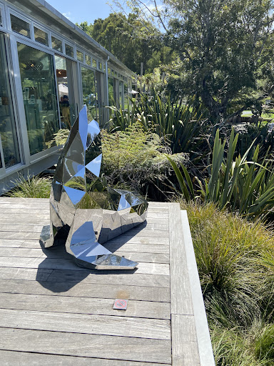 It was a beautiful, sunny Sunday morning and I had just returned from a beach walk with my partner and her parents. However, as you often find yourself after a long walk, we found ourselves thirsty and lacking in energy…how could we solve this pressing issue you might ask? Enter Brickbay…we drive down a beautiful and whimsical driveway overlooking some artful sculptures to the cafe/restaurant to quench our thirst. As we pull in to the large and spacious carpark we marvelled at the beautiful views surrounding us, a scenic vista you could say. We were pleasantly surprised to find a stunning outdoor seated area, with even more stunning views of the sculpture walk and bodies of water all around us.