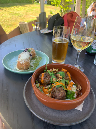 Next, when we arrived, we were greeted by a hostess with no smile, no hospitality, and with this look on her face “ugh more people I hate it here”. Our server (when we finally were able to flag one down), was not much better, she was super grumpy and it seemed the whole time that we were interrupting her work by placing our orders. The bizarreness did not end there. We ordered a mezze platter, which in the menu was described as including shakshuka. When we got the platter, it turned out that for some unknown reason at that place they use the name “shakshuka” to refer to a tiny bowl of eggplant relish, and not to the traditional middle-Eastern egg dish. This was upsetting and also weird that they don’t warn you about it. The hostess tried to “explain” it by saying it is because the platter was supposed to be “more vegan”? Which again was super weird because half of that platter included dairy products. Such. A. Weird. Experience.