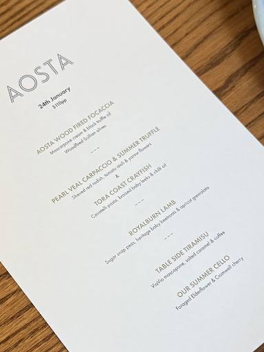 I will preface this by making it clear that I am describing an experience I had back in December. I felt too bad leaving a review at the time but I still think about it today so I have decided to finally leave a review. My partner and I made a reservation for our anniversary in December. We were so excited to try Aosta because we had heard such good things, and it is obviously a pricey restaurant so we were really treating ourselves for the occasion and expected high quality in return. Unfortunately our experience was anything but. When we first walked in I got the impression that perhaps our booking had been forgotten. We were asked to wait while our table was set, and then were sat at the corner of the bar. Obviously having made a reservation we were surprised to be sat at the bar, so asked if there was any chance we might please be able to move to a table if one became available. The host appeared annoyed at us for asking but eventually found us a table, which we were grateful for. We were then served by a man whose service was appalling. He failed to introduce himself or talk us through the menu, and when he would run food to the table would simply drop if there without talking us through the dish, all of which should be standard practice in a restaurant of this calibre. He did not check on us once or ask us if we would like a second drink, but we watched him doing all of the above for the tables around us. We were unsure if perhaps we didn’t look wealthy enough to be worth his time, or if the restaurant was simply so annoyed at us for asking for a table for our reservation? The food was good but nothing outstanding enough to remove the bad taste of the service. After the meal, we paid at the counter where no one asked us how our experience was or thanked us for dining with them. Having both come from backgrounds in the service industry, the whole experience felt very strange and I’ve honestly never felt so poorly treated at any other...