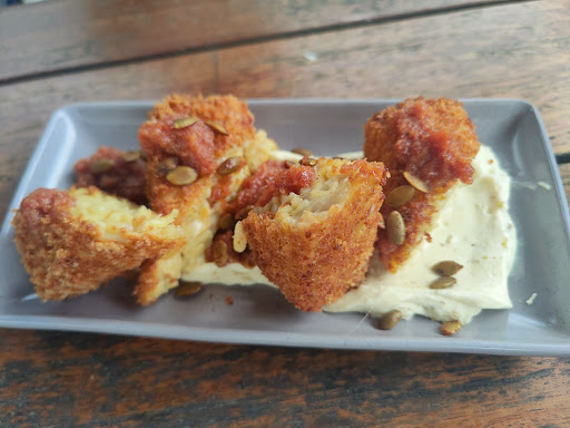 Read moreEpic lunch, definitely memorable. Sat outside in the sun with a nice view, waiter was a character, but perfectly attentive, not in your face, but hit all the marks for an enjoyable meal. there was an issue with the order where the printer failed, so our meals got delayed, but things happen, and the important thing is the waiter owned it, and made good by giving us a little taste and spiel of a yet-to-be released local wine they had on-hand while we waited. My chicken sandwich was good... but my partners fish chips and mushy peas was INSANE good, crispy batter, perfectly cooked fish, well seasoned peas and a killer curry aioli. And thanks to the impromptu tasting, our next stop was that local winery, Wet Jacket, where we walked out with a load of wine and cheese that was...