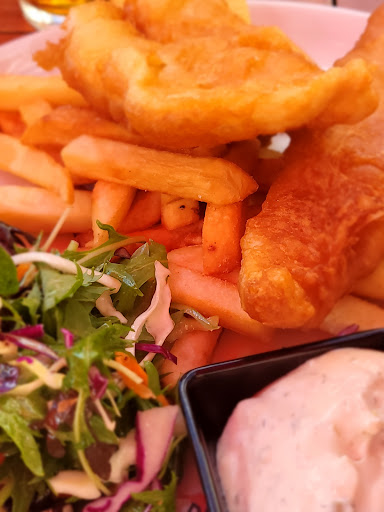 Cool vibes, sunny day, outdoor seating and super friendly staff. Cold beers, fish n chips and delish cauliflower pops. All good here for a relaxed catch up with friends and family. Great location for a thirst quenching session while missus shop. Public holiday and most places were shut. Outdoors was packed so grabbed a seat inside. Perhaps the shift changing time so most staff busy making shift plans for the evening. We order a couple of beers at the bar and sat down. One beer glass came with a 💋 mark. We somehow got attention of a server and her first comment on our complaint was " is that your lipstick?", pointing to the lady with me. How awkward was that? Eventually replacement beer was plonked in a coke glass on the table. There were atleast 7 staff working and at a modest.normal pay of $25/hour, all these guys were making $62.50/hour due to blessings of Aunty Jasinda on public holidays. We were paying 15% surcharge too. The basics of service industry is to care for customers. Staff seemed to be a great team serving each other but very little attention and smiles for customers. This is prime location and most tourists end up in Octagon for dining. Wish we could show some more care...