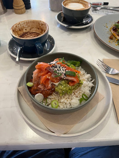 Read moreAbsolutely amazing! We had the lamb leg and the poke bowl with salmon and were surprised about the high quality of the food! Both dishes were totally delicious and especially the lamb leg on pita is a very good value because it is a lot of meat you get to eat. The overnight lamb leg meat was perfectly prepared and tasted amazing together with the pomegranate, cranberries, feta and rocket. It was a compliment in my mouth and so much better than I expected this interesting but tasty combination to be. The salmon in the poke bowl was super fresh, and even though my partner and I usually don't like pickled ginger we loved it in this dish, probably because it was selfemade here. The sauce in the bowl together with the rice and other ingredients were a perfect combination, delicious and healthy without being too heavy and makes for an ideal lunch. I don't know how you can offer such quality food for such low prices but we are baffled. If you are in the area, definitely try the lunch here, it's definitely worth it. The coffee is also very good and it's a cosy little cafe with a nice atmosphere. We will definitely be back to try the breakfast and also have lunch here...