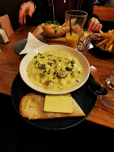 Read moreFirst time visit, located in the heart of the student district, but once inside you feel like you are in an outer suburbs bistro. Place was surprisingly busy at 7.30pm, front dining area full and bar area started getting busy. Staff seemed to have it under control, bar service to the table was especially quick. Good range of beers on tap. Mainstream selection from Moa and some other smaller breweries. Epic Thunder APA was the favourite. Shared some entrees - lamb dumplings, spicy chicken, smoked salmon, haloumi fries all tasted very good. Beef ribeye main cooked perfectly with a big spoon of whipped garlic butter on top. Truffle seasoned fries were nice. Jus was tasty but a little runny and didn't really stick to anything. Cheesecake for dessert, not typical 'cake' presentation but still tasty. Keen to go back to try some...