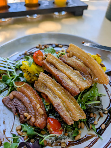 Read moreAfter a morning hike I stopped in for some lunch and samples of local beer. The outdoor seating area was nice on a sunny day so I sat outside. After I looked over the menu I stepped inside and placed my order of a pork belly salad and a taster of 4 beers.