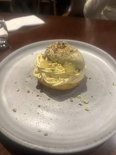 I feel that if you order a menu like this, you expect to be surprised and to get the most exclusive stuff that's on the menu (which should be the case when you look at the price you pay for that menu). The starters were nice, although one was basically a corn on the hob put on a stick. The main was pork belly with fried potatoes and a salad (some crunchy lettuce with grapefruit). I was rather disappointed by this. The taste was good, but it wasn't very creative and I felt a bit let down as to me it didn't feel like the best the chef had to offer (at least, I hope so as it was tasty but mediocre). Likewise, the wines for the wine pairing were nice but came either long before we were served the accompanying dish or when we had already started. It also didn't come with much description of what we're drinking. The aperitif was presented to us as "this is a glass of bubbly wine".
