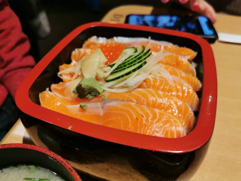 Operated by a Japanese, this restaurant was so popular that the crowd seemed never ending (at least during the time I dined there). ā¾salmon don set that came with thick cut salmon sashimi, ikura, miso soup and pickles - ā¾Tempura udon - nothing beats slurping a bowl of piping hot noodle in this kind of weather.. I tell you. ā¾teriyaki chicken roll - the eldest wanted it. ā¾Tempura Bento Box - consisted of Japanese omelette (tamago), tatsuta-age salmon, broccoli, salmon and other fresh sashimi, teriyaki chicken, prawn tempura with 4 pieces salmon roll sushi and miso soup.