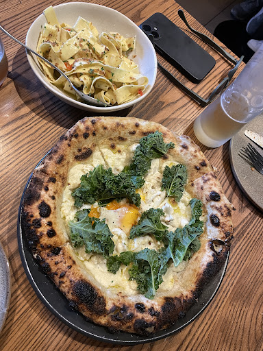 However, after 45 mins waiting and watching the other customers who arrived after us get their food, we knew they'd forgotten our order. When we asked the waitress about it, and she said that because we ordered a starter, the kitchen was waiting to make our pizza - basically putting the blame on us and lying since the other customers ordered starters as well. She promised the order would come out in 8 minutes, which it did. But the pasta was undercooked and the purple cauliflower pizza had white cauliflower with raw kale (which was not on the menu) thrown on top. Apparently the waitress didn't know they were out of purple cauliflower, which is the main ingredient of the pizza.
