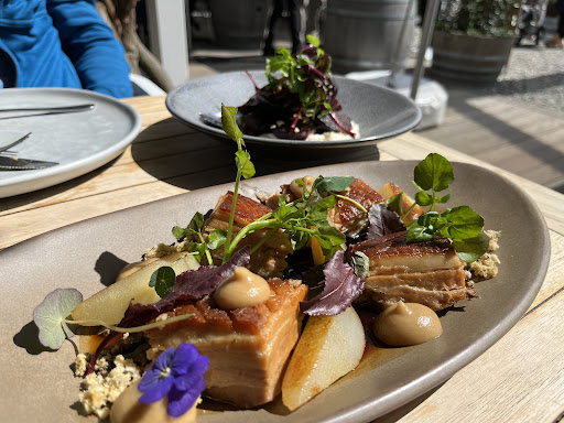 Our repast commenced with beef cheeks, a masterpiece of cooking that was both unapologetically rich and elegantly balanced by a delightful acidity that danced gracefully through each bite. The wine, oh the wine! It was nothing short of ambrosial, with the Chardonnay presenting a buttery yet crisp embrace that whispered sweet nothings to the soul. As a companion to our beef cheeks, the charred cos lettuce was nothing less than a revelation. Cooked to perfection, it was the ideal consort, enhancing and being enhanced by the rich tapestry of flavors on our plates. The denouement of our feast was a peach mousse that was the epitome of dessert perfection—lusciously scrumptious without erring on the side of excessive sweetness, allowing the true essence of peach to shine through, untarnished and celebrated.