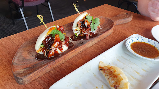 ย ย ย Read moreWe had high expectations of this place based on the reviews as we both love this type of cuisine and eat it regularly in the UK. It's an odd restaurant - attached to the swimming pool area of a hotel and lacking much character. Busy though for a Thursday night so we were lucky to get a seat. None of the sakes on the tasting board really jumped out, and the waitress wasn't great at explaining them. We shared the pork gyozas, aubergine and tofu dish, spicy squid and salmon and avocado rolls. All of it tasted fine but none of it was memorable. The rolls were also made with super tough seaweed paper so it was really hard to bite through and they were too chewy. They have detailed gluten free menu though which is nice. At the end we were asked to tip which took us by surprise as our understanding in NZ is that you don't tip. We ended up paying something which I regret as the service was...