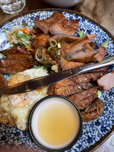 The com tam, a canvas of grilled pork atop fragrant rice, was a delectable fusion of sweet and savory. The succulent pork, charred to perfection, paired harmoniously with the delicate grains of rice, creating an exquisite medley of tastes and textures.