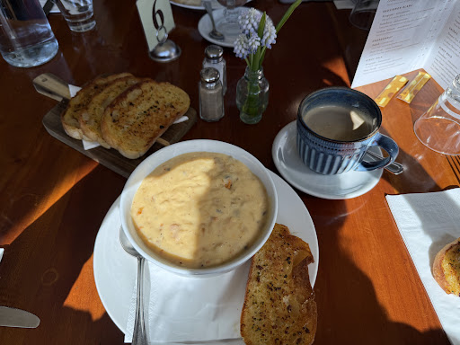 Read moreWe read other reviews about the amazing seafood chowder and after having basically a seafood chowder holiday around the South Island, we wondered how this would measure up for an early 10am brunch. Definitely first equal with one we had at Simes Cafe in Kaikōura (which was a completely different recipe and taste). Absolutely loaded with seafood, and so thick the fabulous garlic toast stands upright in it (too - order extra 😊) but without an overpowering saltiness or floury taste that we experienced with some. Served in a deep bowl, it stayed hot right to the end and will fill us up for the day. The staff were great - proactive and super friendly. With a very cold day outside it was awesome sitting in the seats at the front in the sun enjoying this nourishing hot food. Great coffee and hot chocolate too. Highly recommend...