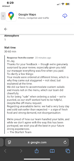 Thank you for your response — though I must say it feels dismissive and somewhat irresponsible. When customers spend $70 on two meals and two drinks, it’s not unreasonable to expect basic standards of service and some recognition when those standards aren't met. Instead of acknowledging the multiple concerns raised, your reply downplays them and implies we the customers at fault.
