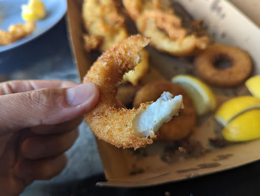 Read moreChips were a reasonable size for a medium. Crab stick was dry, fish was quite nice, and there the good stuff ends. The corn fritter was bland and undercooked. The oysters were so disgusting we took them back. They were pacific, not bluff, as advertised. They were undercooked, had a fishy taste and smelt like something from out of the local effluent pond. We did eat a few and decided that as we had paid good money, we would take the rest back. We were given a full refund. None of it was crispy, but not soggy. It just wasn't nice. There was someone still waiting for their order that was there before hubby ordered, and another customers order had been lost. There were plenty of staff on, all working as fast...