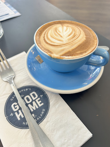 Read moreWhen my wife and I went to the coffee roast house and cafe on Pegasus Blvd, we tried to order food from a menu on the table nearby, to be told that the menu was closed. We went from there to the Good Home bar and cafe. We were made very welcome by the lovely waitress, who took our orders for food and drinks cheerfully, with a pleasant sense of humour. She made sure we had drinks and the food was prepared and served very promptly. The cafe has a pleasant atmosphere and a good view out over the Pegasus lake. I noted that they even had dog bowls on the patio for people walking or dining with their pets. When our food arrived it was lovely. I had fresh fish of the day, cooked in Macs Gold beer batter, served with delicious hot potato chips and a coleslaw that had a touch of mint. The meal was served with a tasty bowl of aioli and another one of kiwi red tomato sauce. Original and easy to eat. My wife's pork belly bits were beautifully done and she tells me they were great. I can vouch for that because she wasn't offering to share with me. Our coffees were similarly delicious and served with sugar and marshmallows. Why do baristas ask if I want marshmallows? Just looking at the size of me should answer that question. However the staff here didn't ask, just providing then in the saucer and letting us decide. The whole premises were immaculate and the restroom was spic and span. Well done team there. I would go straight to this cafe first if looking for a meal, drinks and...