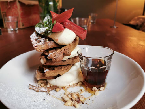 Restoring and fitting out this once abandoned building took the owner 10 months but the end result was astounding. It has the chic industrial look to it. After all, this area is Dunedin's heritage warehouse precinct which is more than 120 years old. ◾brown sugar buttermilk waffles with vanilla bean mascapone, citrus rhubarb, and toasted hazelnuts ◾brownie ◾Savoury scone ◾soup of the day which happened to be mushroom soup which came with 2 piece of ciabatta toast and butter