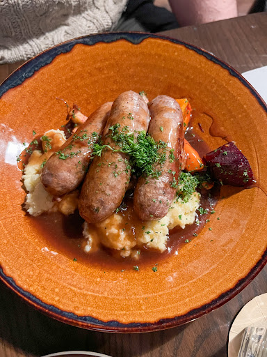 Read moreService was friendly and efficient. But food was disappointing. We were out looking for a Sunday roast pub dinner and chose this pub because we wanted to try out their Pigs in Blankets, expecting an English dish of little sausages wrapped in bacon but they had "run out". A but disappointing, like going to an Indian restaurant and they had run out of Vindaloo. Sunday roast ($20, which is the same as several places in Queenstown) had the option of beef or pork. The pork roast was miserly for dinner, 3 thin cut pieces of pork, which I'd estimate around 80 grams, to be generous. The crackling on the pork was chewy and the pork was at the fatter end for pork belly. It came with a yorkshire pudding which tasted ok, but strangely had about a tablespoon of oil inside it, which I poured out. The beef roast was acceptable for a pub but there are better Sunday roasts around. The crusty loaf was edible but was very mediocre even by pub standards, only order if you really need a "filler", which we did. The setting was nice, I liked the outdoor seating option by the little stream that runs through town. Good setting for drinks in the late afternoon/evening, but I wouldn't recommend for dinner. Food was about 1.5 star, friendly staff and setting brings it back...