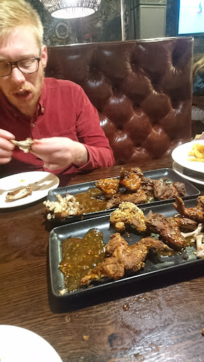 I'm not sure what sort of eugenics new Zealand has used on its chickens but the selective breeding has lead to wings the size of wheel hubs on the Mazda premacy. Ignorant of this we ordered 10 of the bad boys each, choosing to have them hot. Well blow me away and throw me at the talons of a kea bird but I reckon the waitress may need a chirpiractor after delivering those wings to us. She should have had assistance because the total load must surely have been over 17 kg. I did six wings, maybe seven, before I became a mumbling mess. I had to go to the bathroom and stare at myself in the mirror to try and ground me back to reality, I was completely mind shattered by those wings. Had I done only seven? The wings were tasty but they had destroyed my ability to count. We had poutine side which looked and smelt good but my stomach curdled at the idea of more food. People around us offered sympathy and patted me on the top of the head once or twice each. It must be a local thing.