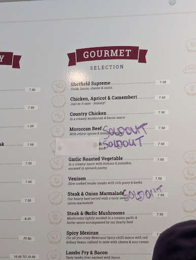 Read moreWe had a really unpleasant encounter with the coffee lady but the main counter lady and food was really good. In fact my mom said the scone she had was one of the best ever! Re the coffee, my mom ordered/paid for an XL and got a small so asked to please get what she ordered and in short the girl said, that's not what came through I can't help you, and ignored. so my mom had to really awkwardly grab the busy counter lady and she told the coffee lady it was her mistake and please redo it. Eventually we got the XL cup but the coffee lady had perhaps taken us wanting what we paid for personally and just tipped the small cup into the large cup. Feeling extremely uncomfortable at this point knowing we would have to confront her again when asked to fill it up she said, do it yourself! so my mom had to awkwardly walk literally behind the counter and fill it up at the hot water tap herself. Such a shame because it was the start of our mothers day weekend away and I was excited to show my mom the famous Sheffield pie shop but it ended up putting a real sour and negative start...