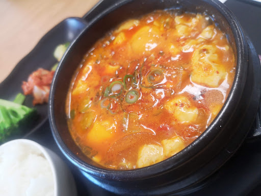 First time we have tried Korean food and most impressed. We donāt eat meat so da bit worried about our choices. However, found there were plenty of options. I had a spicy seafood dish that came with rice and side dishes of different pickles. My wife had similar but the main was a non spicy tofu with black bean sauce. Both meals huge and delicious. Service was excellent and attentive with the chef coming out to check if I was happy with the level of spice because I requested very hot and it was perfect. Decor is scrupulously clean and new...