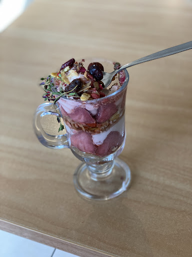 We arrived at Wild Pear Café, and my partner was immediately impressed with the menu options. We're from Hamilton, and it's very hard to find a variety of culturally/religious safe foods for my partner, apart from some Indian cuisine restaurants. It was refreshing for us both to have a change of cuisine, and to enjoy together. Once our order was placed - a keto bowl for me and a hippie bowl for my partner, with added haloumi and two sweet slices for afterward - we signed up for the loyalty program and waited for our order.