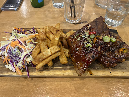 My wife had the scotch fillet which she said was nice, not well seasoned, but cooked well. The chips were the best part of the meal. I ordered the St Louis ribs which were not tender, and likely cooked on a prior day. The coleslaw was brown and bitter, and from a packet.