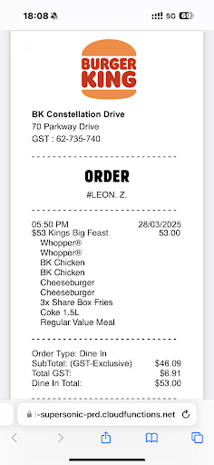 Read moreI was wanting to share my bad experience at BK restaurant. I working as a menulog delivery driver and got order to pick up from BK constellation (Auckland, New Zealand) Was standing there and was waiting if someone will serve me but it was really sad that no one bothered to ask if I need help or if I am there to order something. A girl was just standing in front of me at counter doing something on computer/ pos system. I wasnât wanting to disturb their work but was waiting if she will ask if I need help , but looks like they donât care at all about delivery drivers or customers , I had to ask company to cancel my order as I couldnât wait there more when no one even care about you standing there , If they canât be bothered asking standing customers if they need help then they shouldnât be at counter or they are in wrong profession , felt very disappointed and disrespectful. Date -:08/06/2022 Time -: 07:13 PM