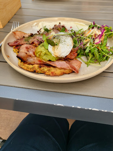 A last minute decision to have a lazy Sunday morning breakfast left us spoilt for choice. Do we go north or south? Let's go north! So onto First Table to find somewhere which led us to Cafe Botannix in Albany. It was a really chilly 4 degrees outside when we set off and not much warmer when we arrived. Anyway, we scan the menu and my husband has his usual eggs Benedict and me? Well, if corn fritters are on the menu, I'm in! we find a table next to the fireplace although being a covered outdoor area, we weren't feeling the heat. Our drinks arrived quickly, a flat white for hubby and an English breakfast tea for me which was lukewarm. I really needed a HOT drink given the chilly temperature. Then our meals. They were tasty enough, I just was hoping for nice plump fritters. Mine looked more like sweetcorn crepes, but as I said, they were tasty with a nice smeer of sour cream on the side, a poached and a generous amount of smashed avo. I just think it would be great if the plates and especially tea pot could be hested prior to serving when the weather is cold. Not a bad brekkie, but it wasn't worth the drive...