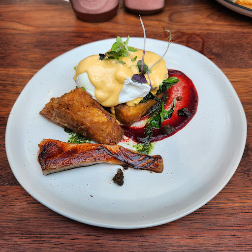 Read moreThe food was okay. Presented okay, too. There's nothing to see here, folks, but I guess it would depend on what you ordered. My dish, however, wasn't worth talking about, but it was definitely worth complaining about. Visually, it looked okay, tasted blah. The red sauce (beetroot) tasted like tomato sauce. They must not taste this before plating up. It almost looked as if it was slap happy on my plate. Service was okay, but we had to wipe our table down and ask for a cloth. They cleared the table but didn't wipe it. I ordered the Salmon Steak- disappointing with portion size. It sure didn't look like a salmon steak size portion, the other food, okay. The dish itself 3/10 needs something. First visit,...