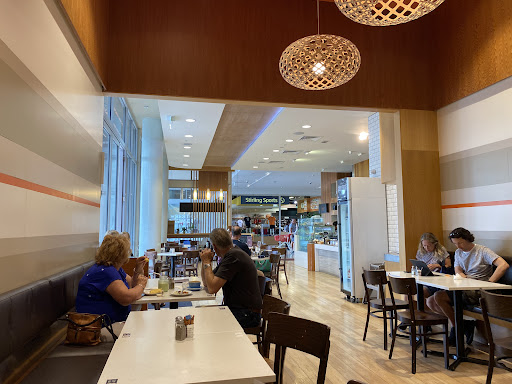 PROS - Everything in front of you, hot food, sweets, coffee, cold drinks, has seating and easily accessible from the front doors.