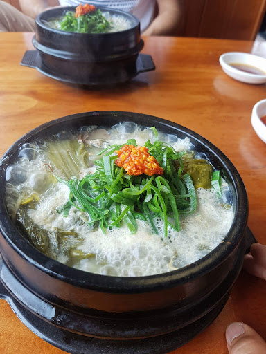 Some reviews here saying the food is bland are making a big mistake - they(kitchen/chefs) do not really add any salt to the meals, they provide salt at each table - if you do not add any then your meal will not come to life. Be sparing on adding the plate of hot sauce to your soup although my spice tolerance is only medium and I like to add it all. The salt is essential though, aprox half a teaspoon for starting although I add about 1 whole teaspoon(it is fluffy Korean salt, you aren't actually getting as much as it looks like).