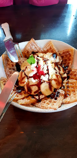 After searching everywhere for a waffle place on google we found this cafe which on the menu showed waffles with cream and a myriad of other ingredients on the menu in multiple pictures. To our disappointment the only waffle was a kids one with icecream, not the breakfast one as seen in pictures on the menus on google.