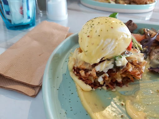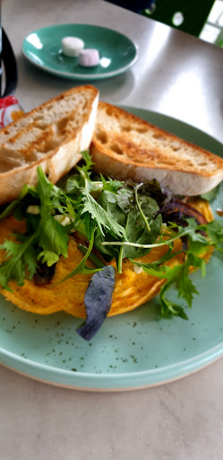 Easy parking, big open cafe plenty of space, has outdoor area too. Toilets.